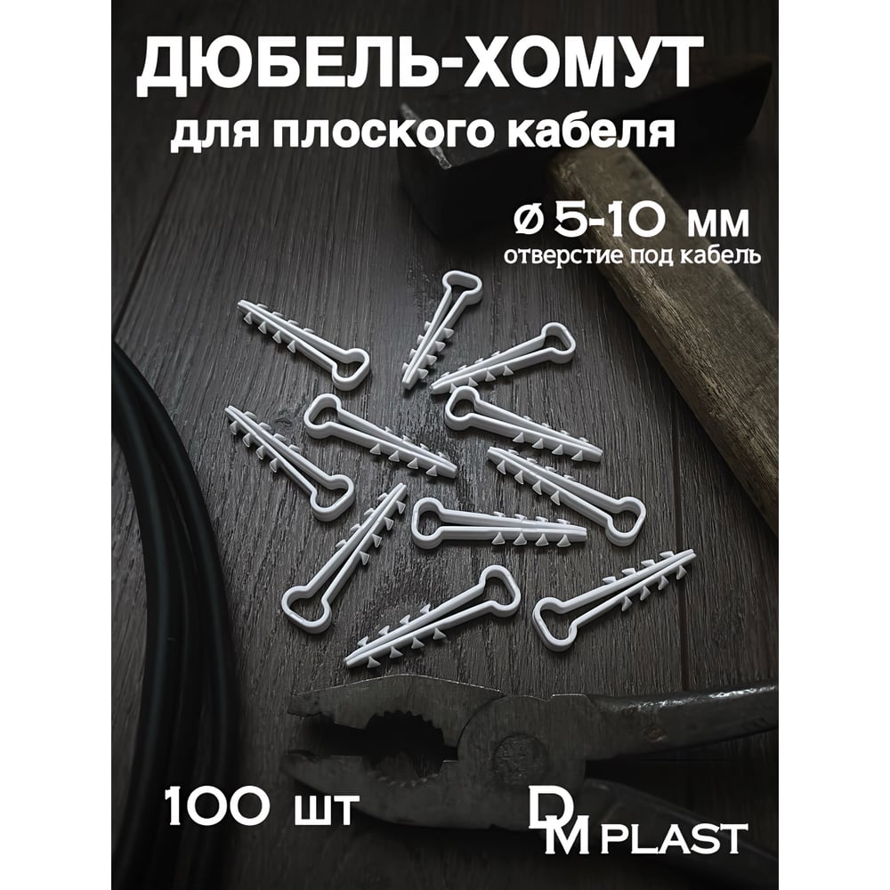Дюбель-хомут DM PLAST 5-10 для плоского кабеля, белый, 100 шт dx5-10dm