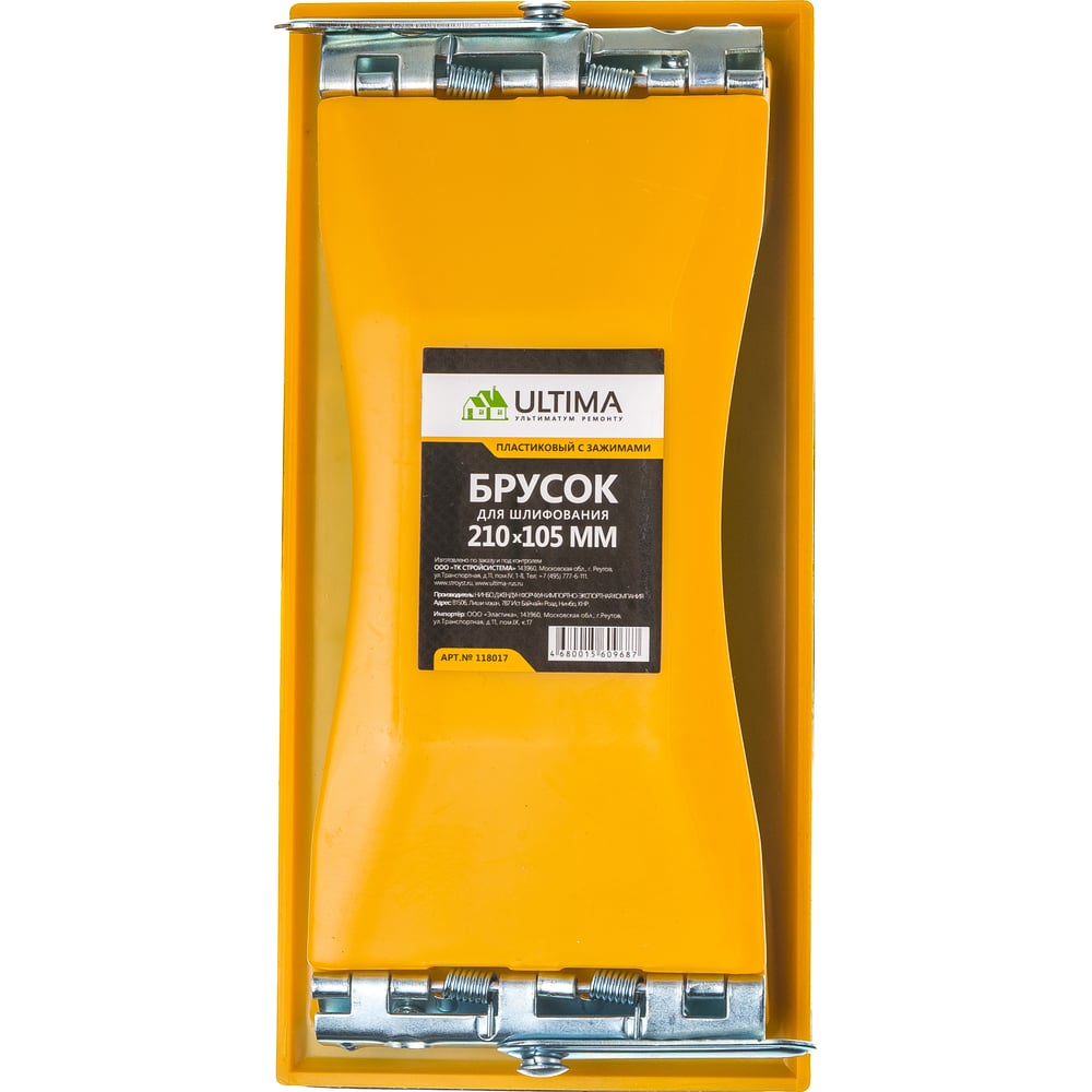 Брусок для шлифования ULTIMA 210 х 105мм, пластиковый с зажимами 118017