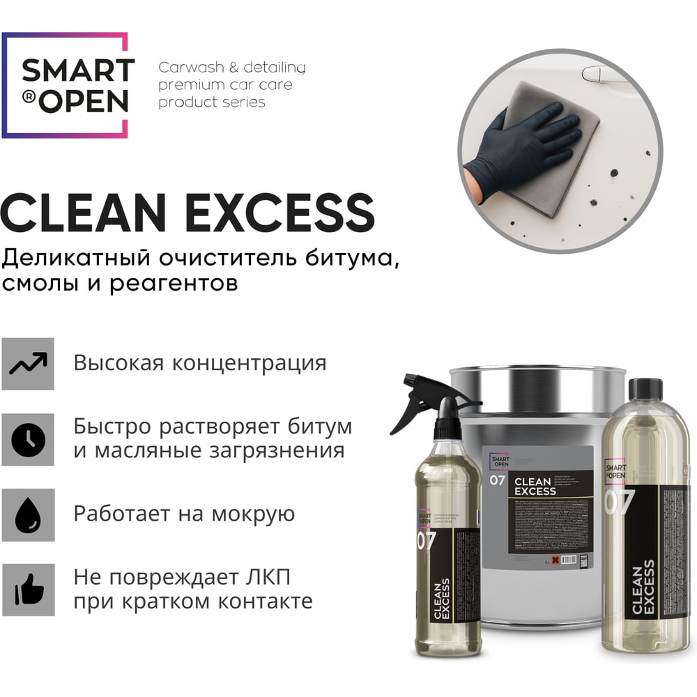 Деликатный очиститель битума и смолы Smart Open очиститель кузова CLEAN EXCESS 07 (Клин Эксес)0,5л 150705