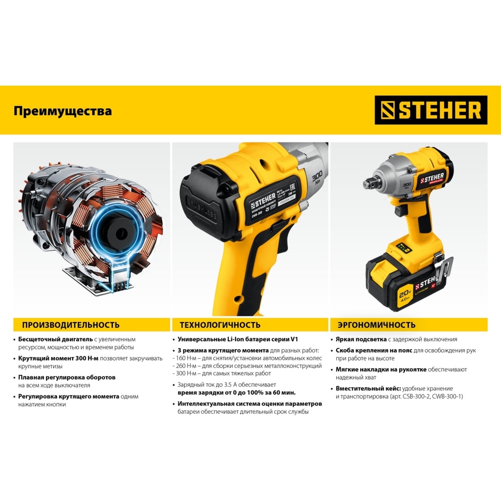 Бесщеточный гайковерт STEHER CWB-300