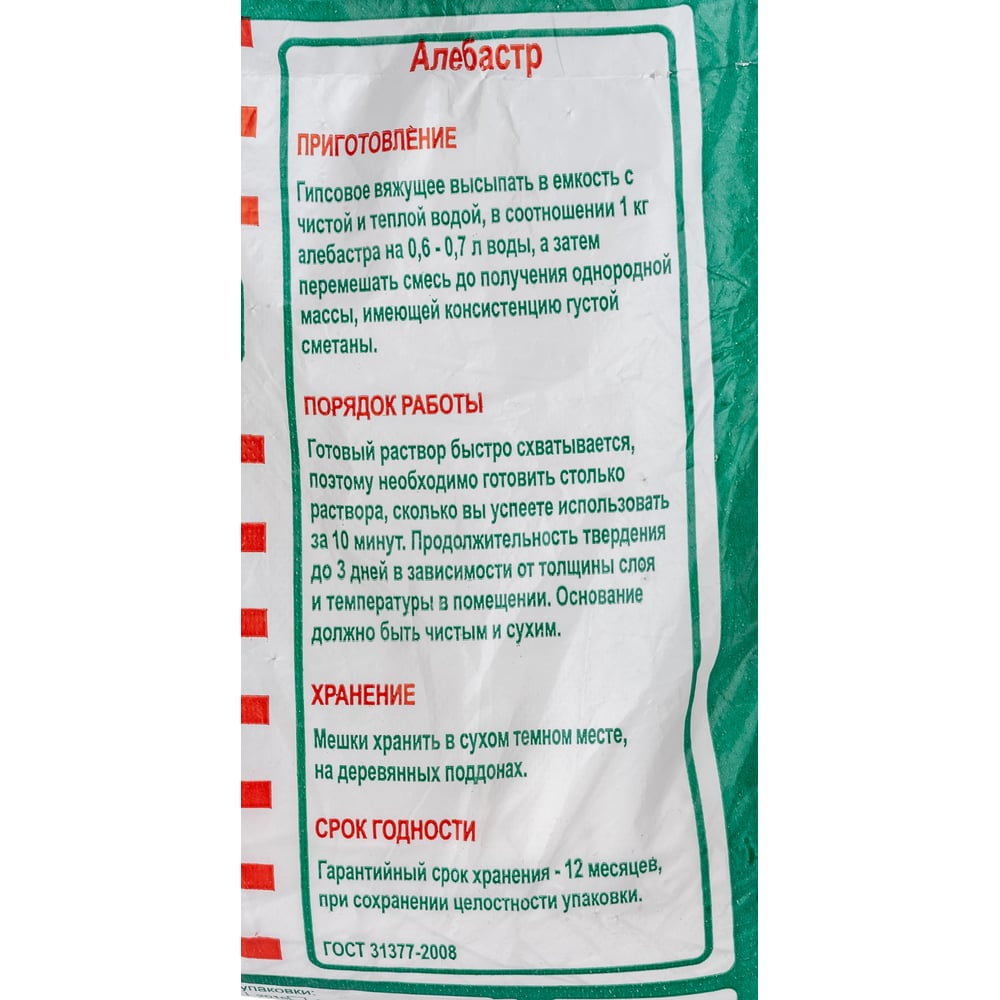 | Расход воды на 1 кг порошка | 0.7 л |