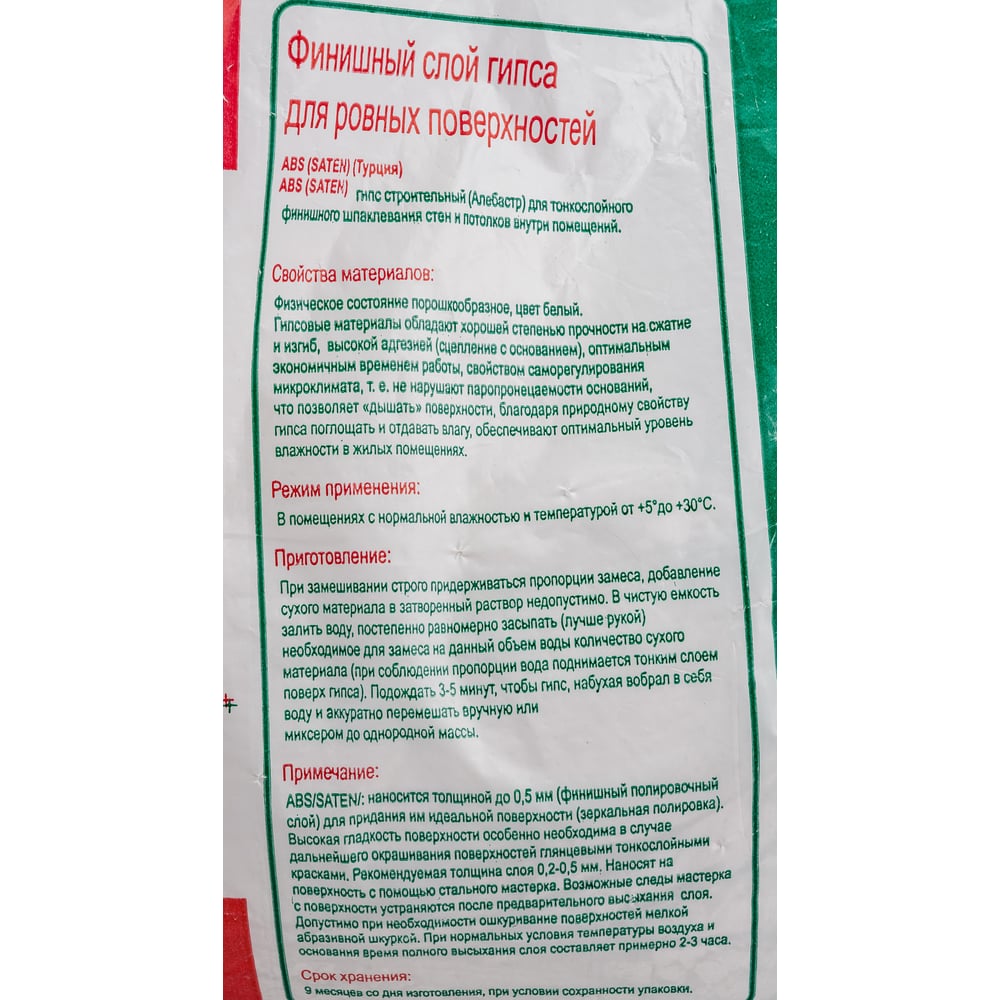 | Основа | гипсовая |