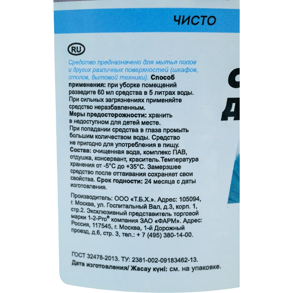 Средство для пола 1-2-Pro БХПЛС-1