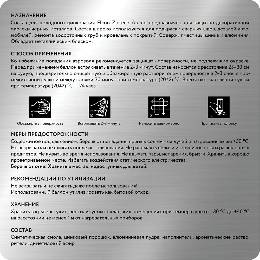| Способ нанесения | аэрозольное распыление |