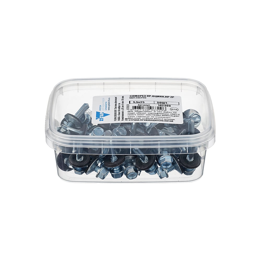 Саморез КР, оцинкованный, КРс ZP, 5,5х25 мм, удлиненное сверло, 50 шт. в контейнере Zitar 142300
