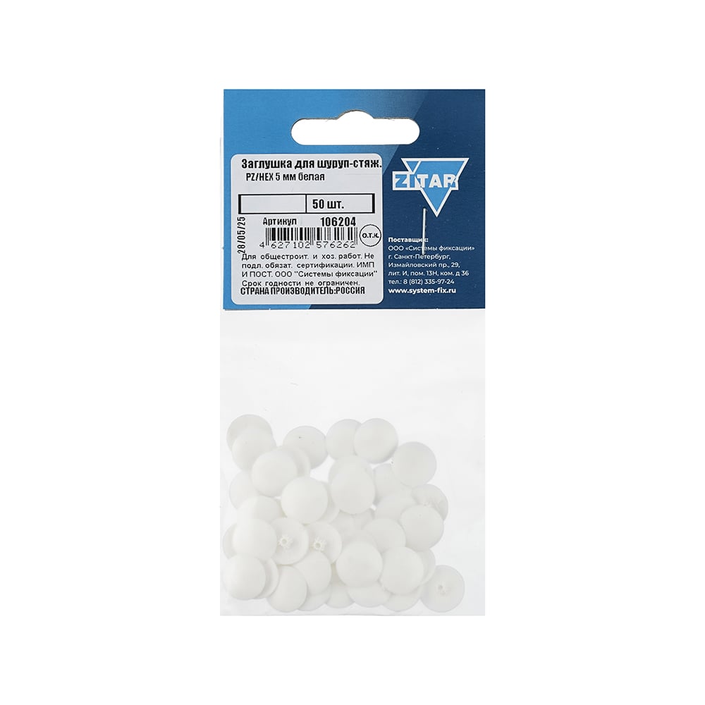 Заглушка №2, белая, 50 шт, пакет Zitar 106204