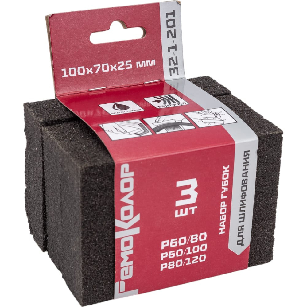 Набор губок для шлифования (3 шт; 100х70х25 мм; Р60/80; Р60/100; Р80/120; карбид кремния) РемоКолор 32-1-201