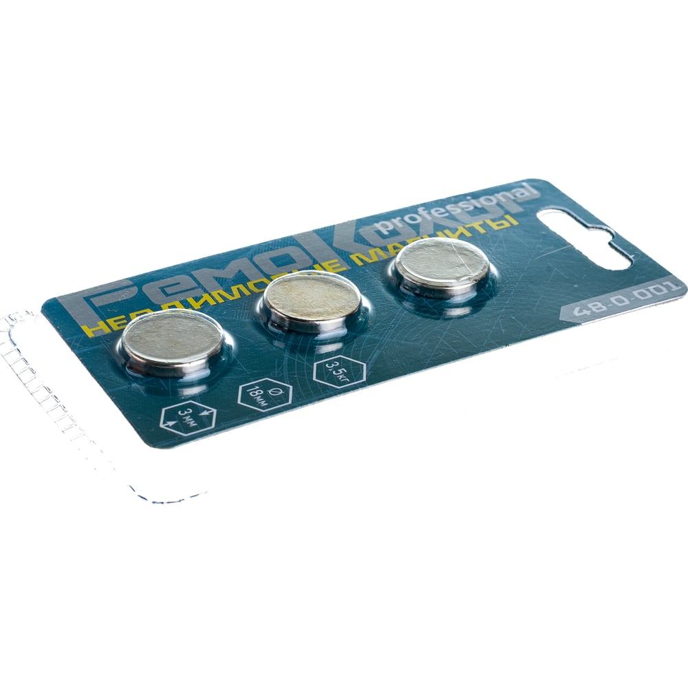 Неодимовые магниты РемоКолор бытовые, сцепление 3,5кг, сталь N42 NdFeb 3 шт 48-0-001