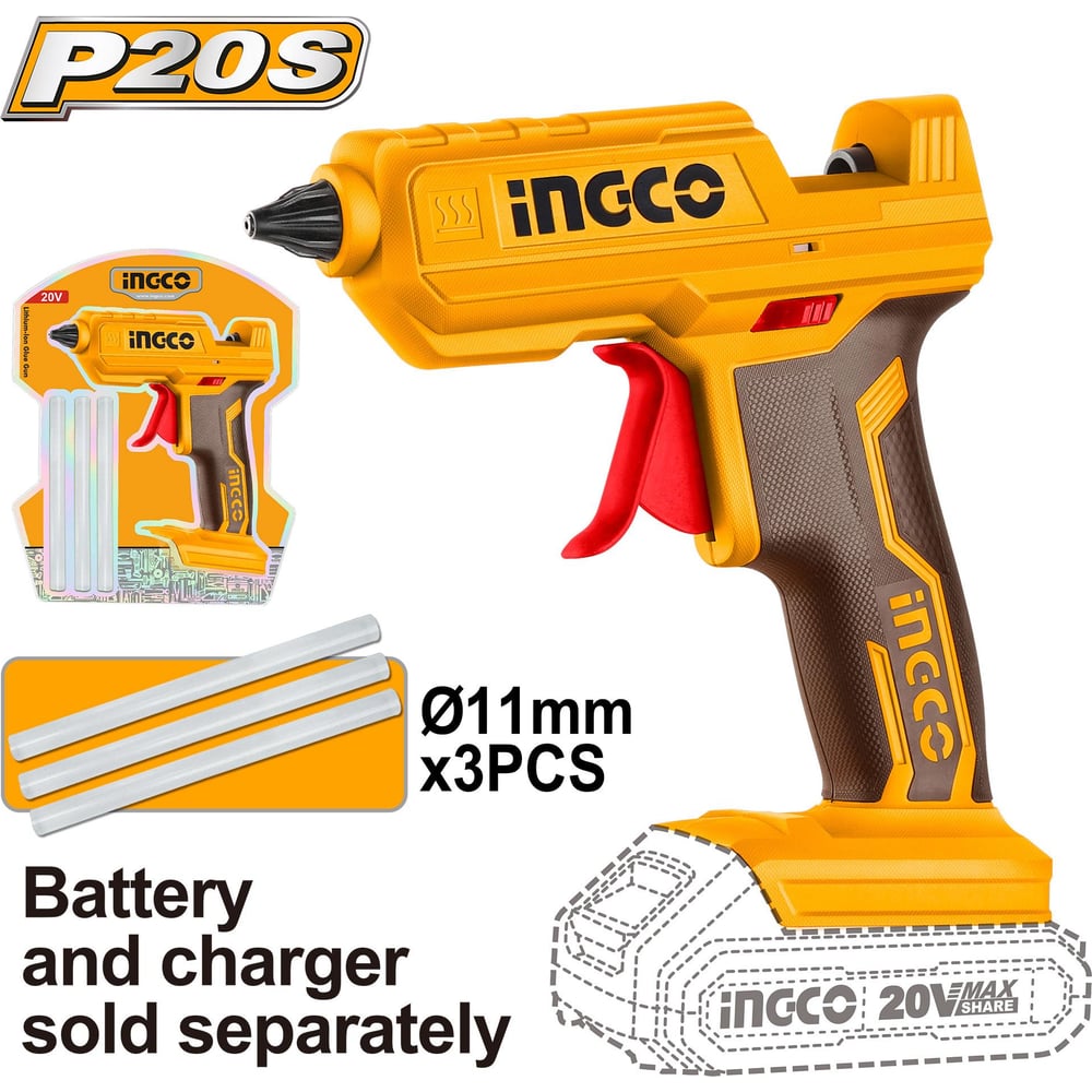 Аккумуляторный клеевой пистолет INGCO 20В Li-Ion CGGLI2001