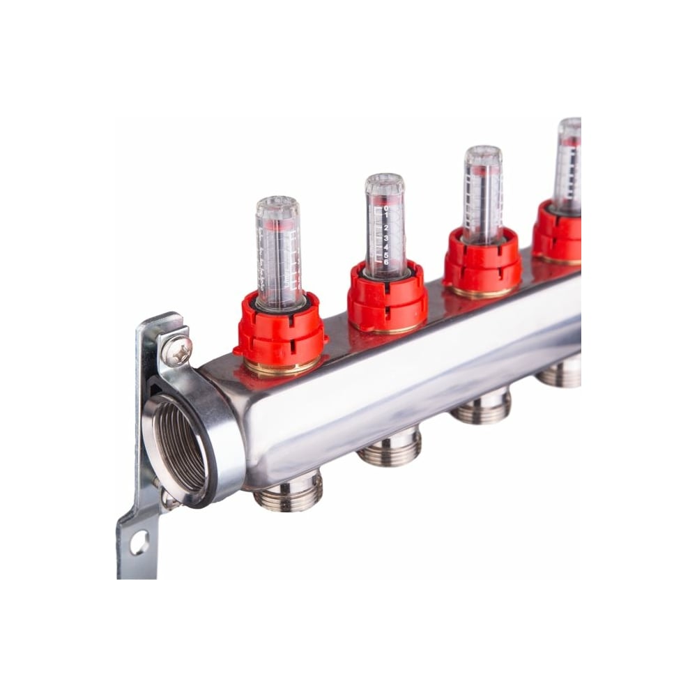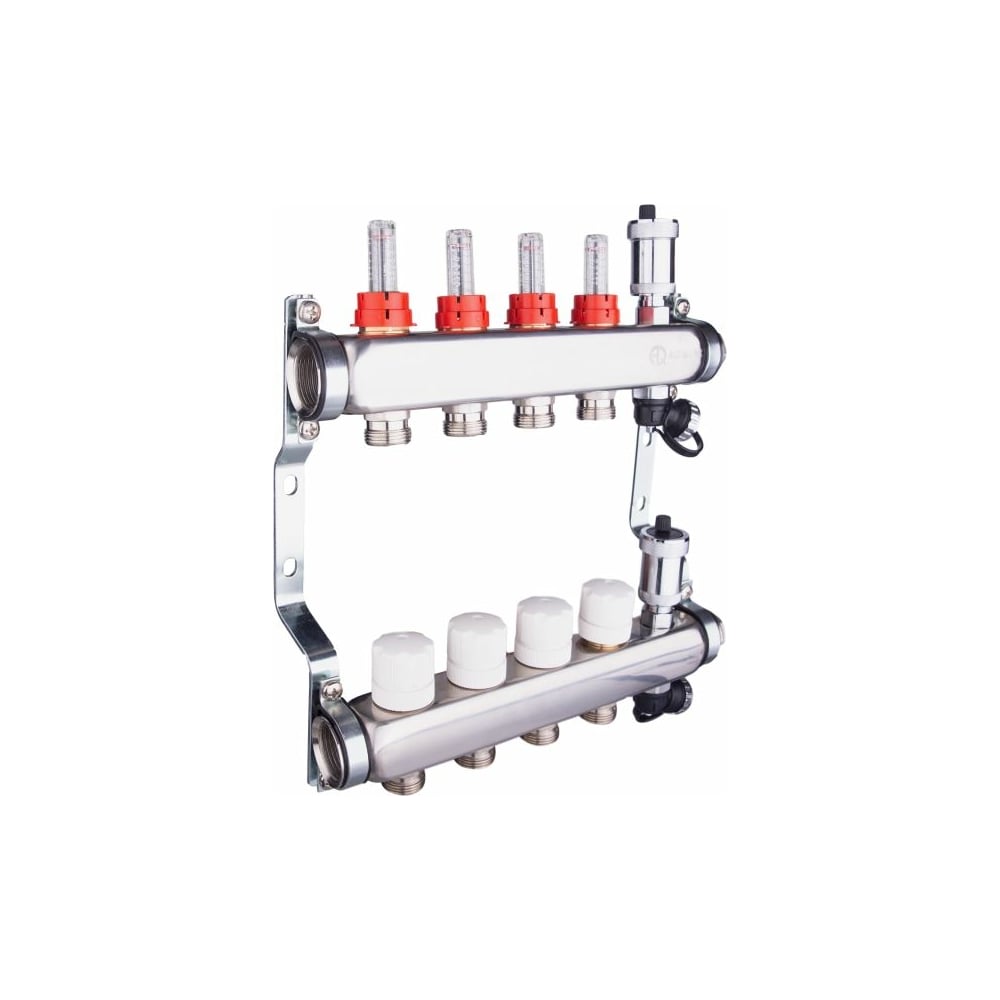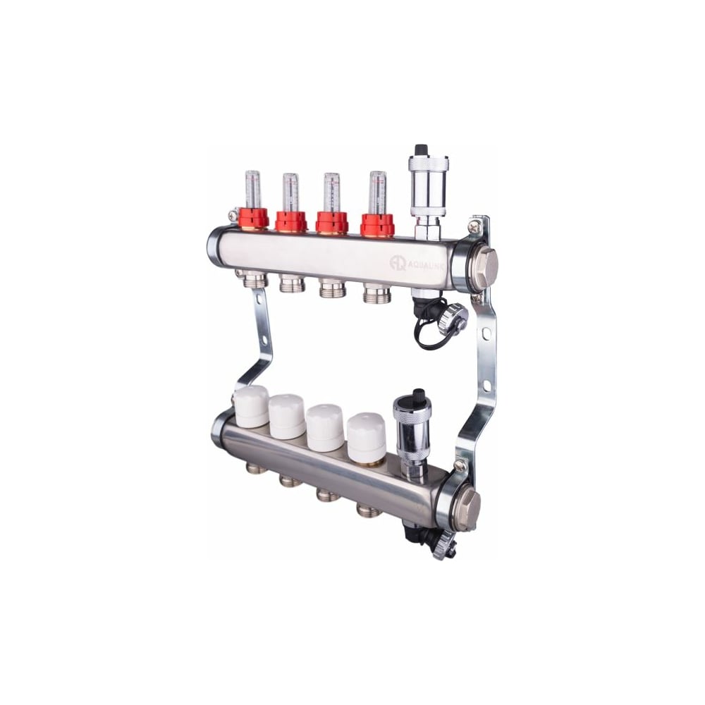 Коллекторная группа AQUALINK с расходомерами, сливным краном и автоматическим воздухоотводчиком, нерж. сталь 1"х2х3/4" 2700