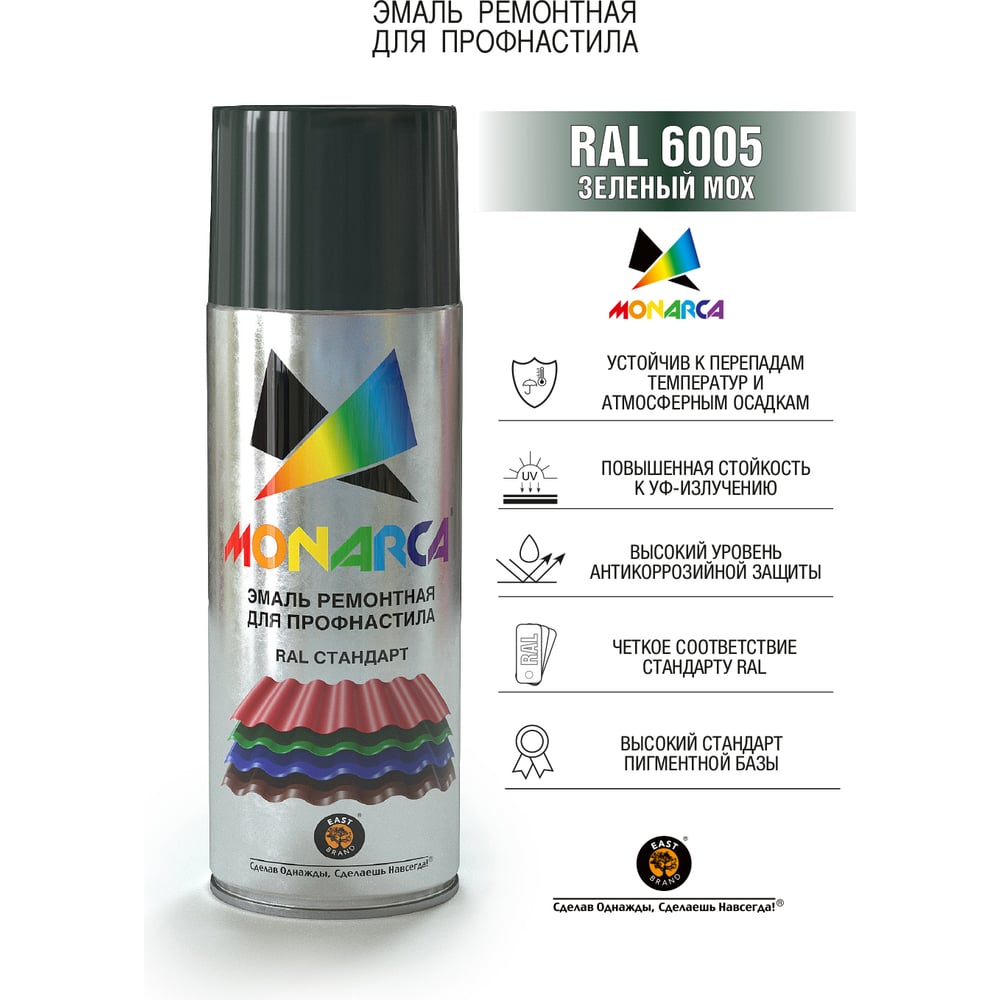 Аэрозольная эмаль для профнастила MONARCA RAL6005 зеленый мох 76005