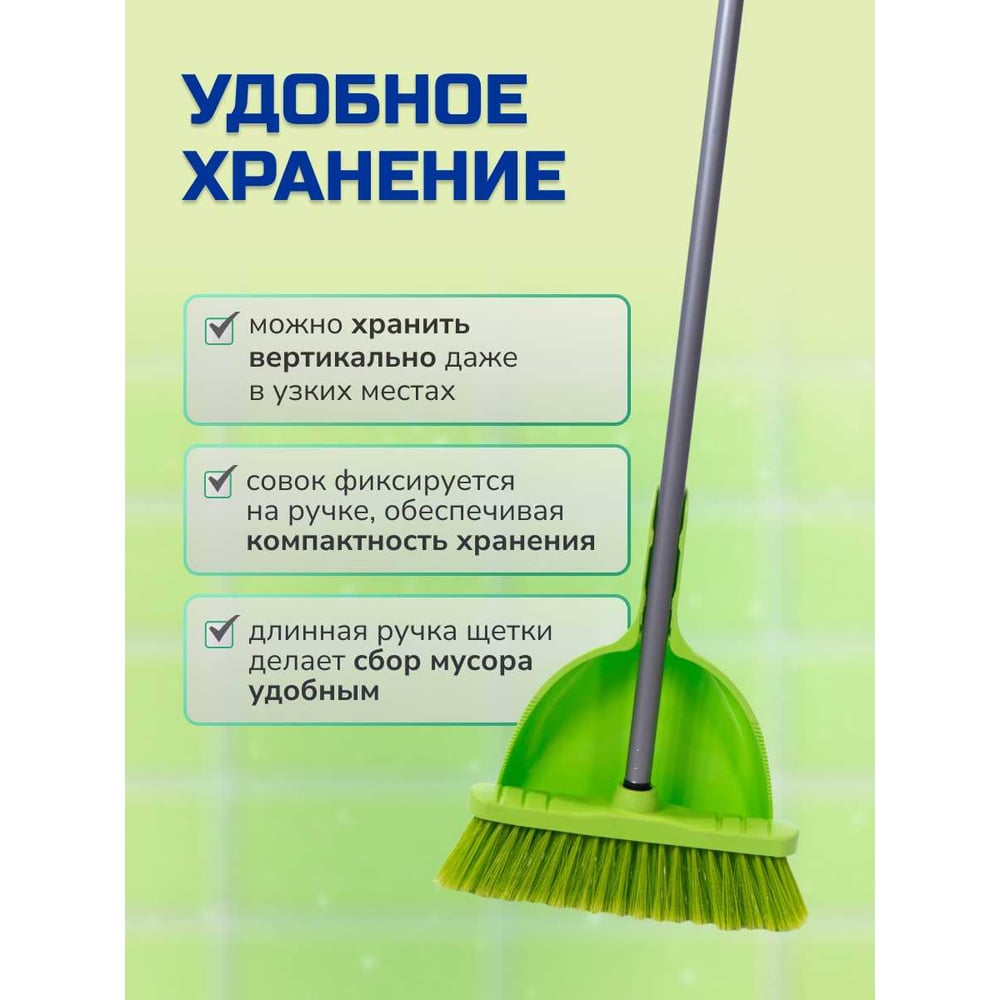 Набор для сухой уборки In'Loran щетка с совком, ручка 110 см, салатовый MSO-104SL