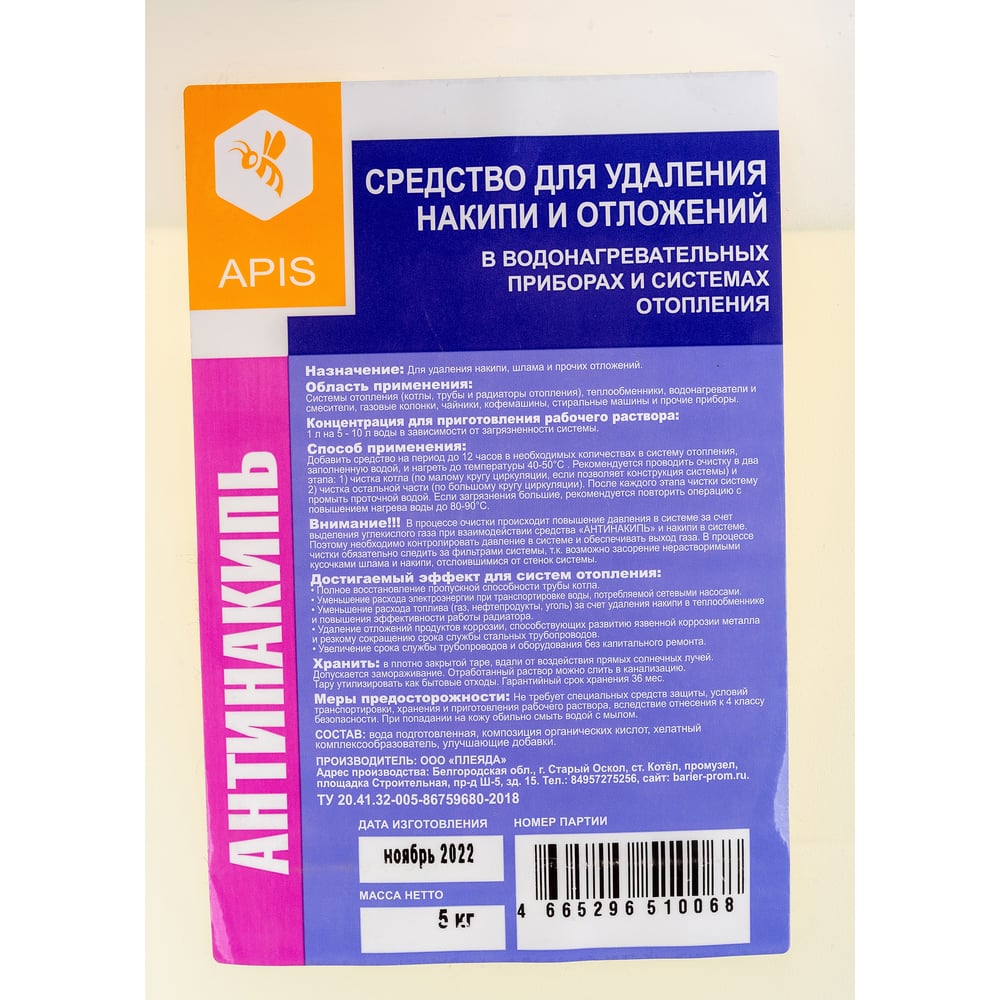 Очищающее средство для систем отопления APIS АНТИНАКИПЬ канистра 5 кг 4665296512451