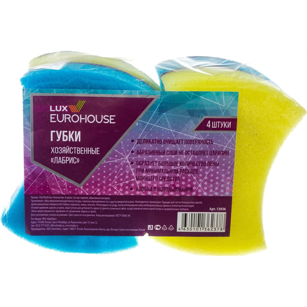 Хозяйственные губки EUROHOUSE LUX Лабрис 4 шт 13936