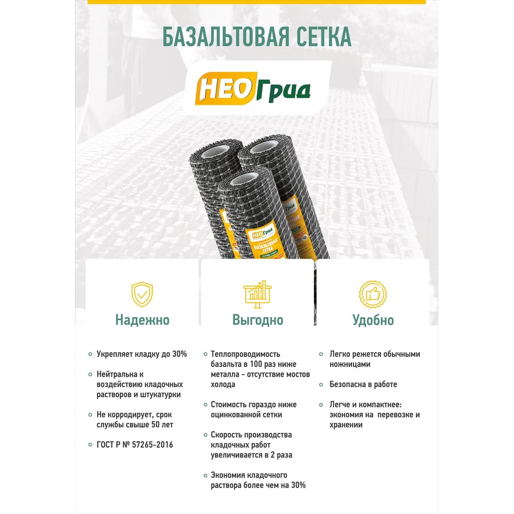 Сетка базальтовая кладочная НЕОГРИД Стандарт СБНПс (ячейка 25x25, рулон 0,25x50, кНм 50) НС 0,25-50