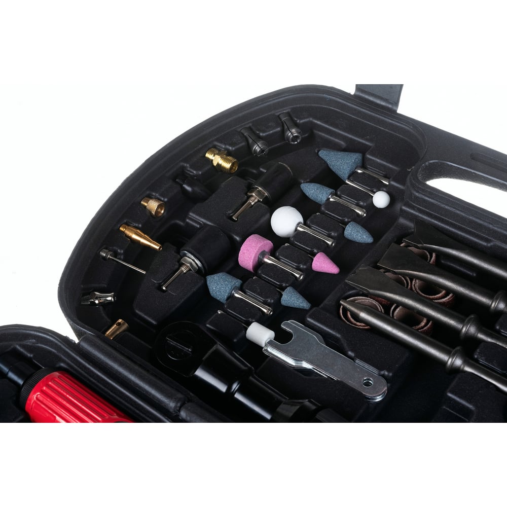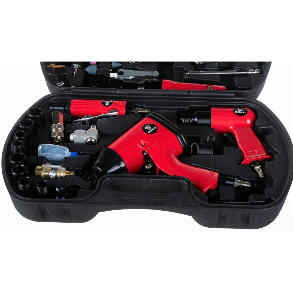| В наборе | пневматическая шлифовальная машина, пневматический гайковерт, пневматическая трещетка, пневматический молот |