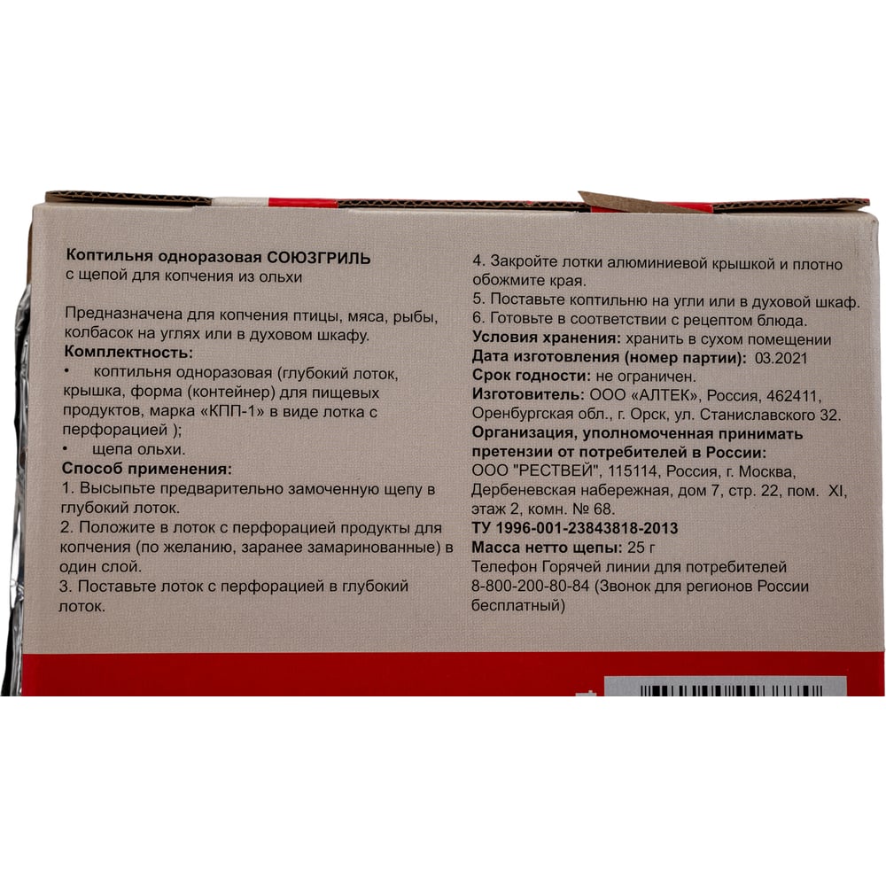 Одноразовая коптильня СОЮЗГРИЛЬ с щепой N1-F14