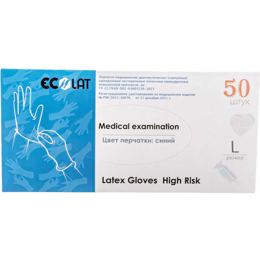 Хозяйственные латексные перчатки EcoLat Премиум 50 шт./уп., размер M 2326/M