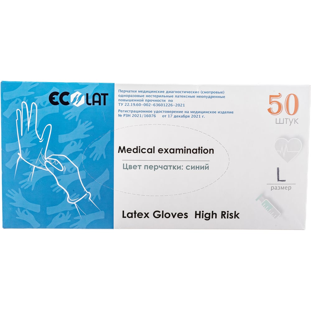 Хозяйственные латексные перчатки EcoLat Премиум 50 шт./уп., размер L 2326/L