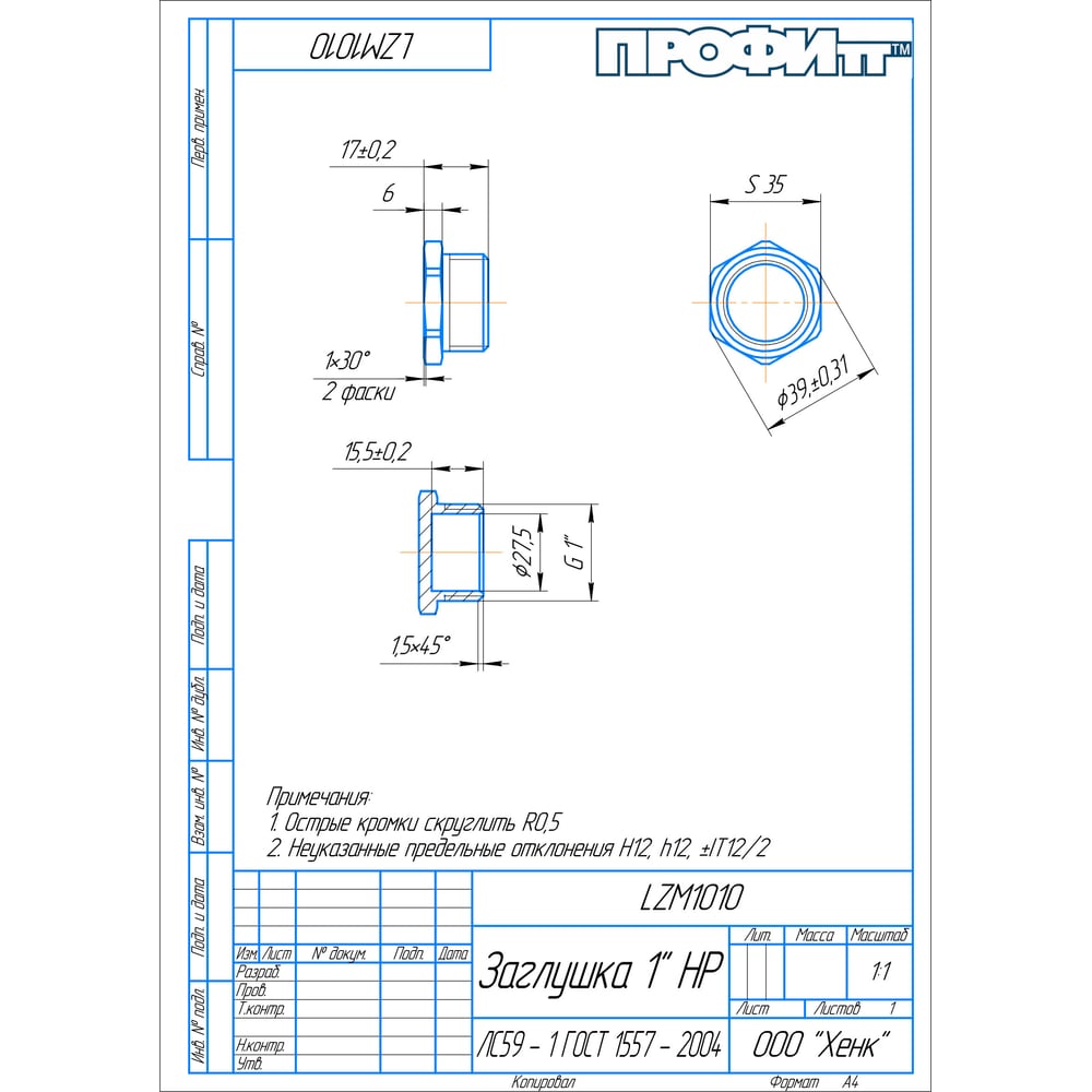 Заглушка латунная Профитт НР 1" - 10 шт. 9274740