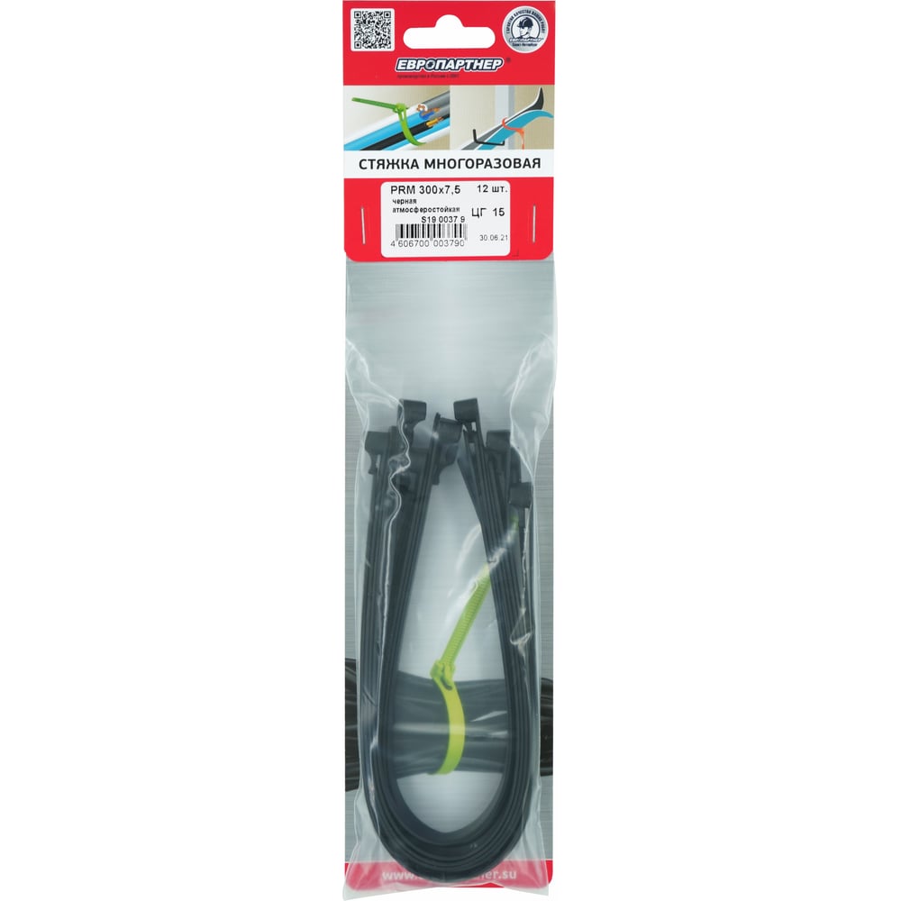 Многоразовая стяжка ЕВРОПАРТНЕР PRM 7,5х300 черный 12 шт. S19 0037 9