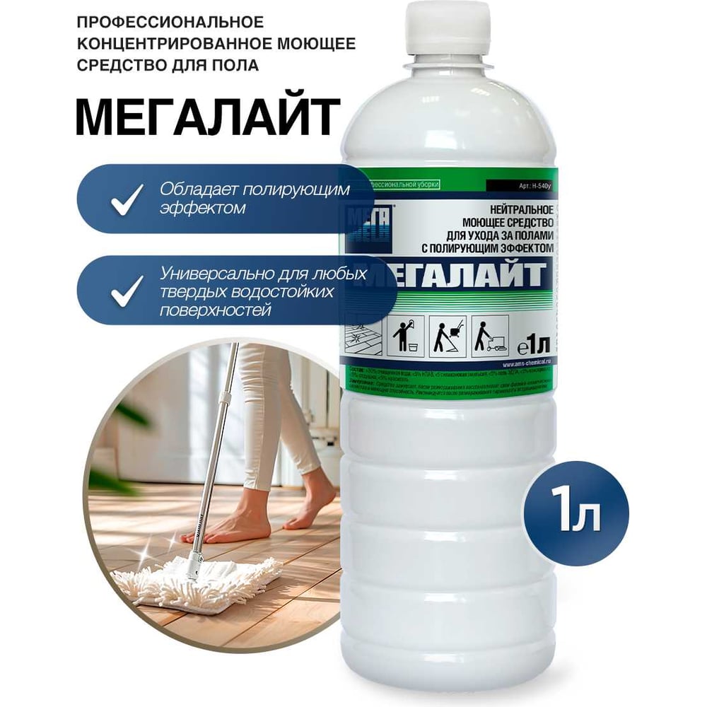 Нейтральное моющее средство для ухода за полами Мега ЛАЙТ 1 л с полирующим эффектом Н 540у