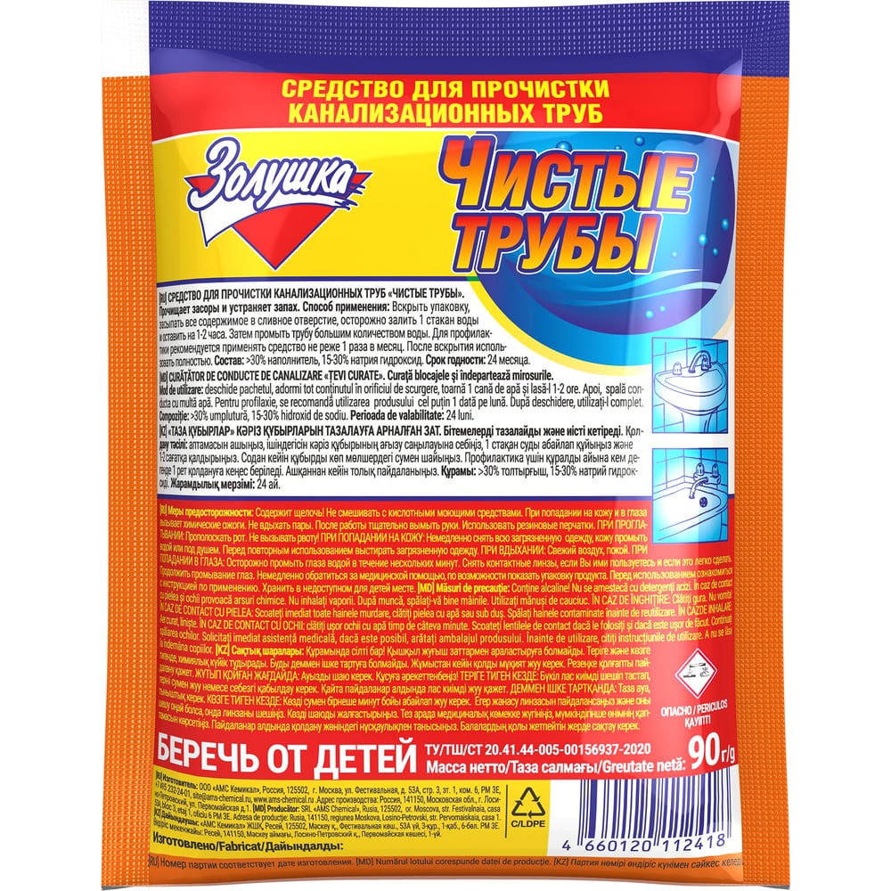 Средство для прочистки труб Золушка Чистые трубы 90 гр оранжевый Б35-1