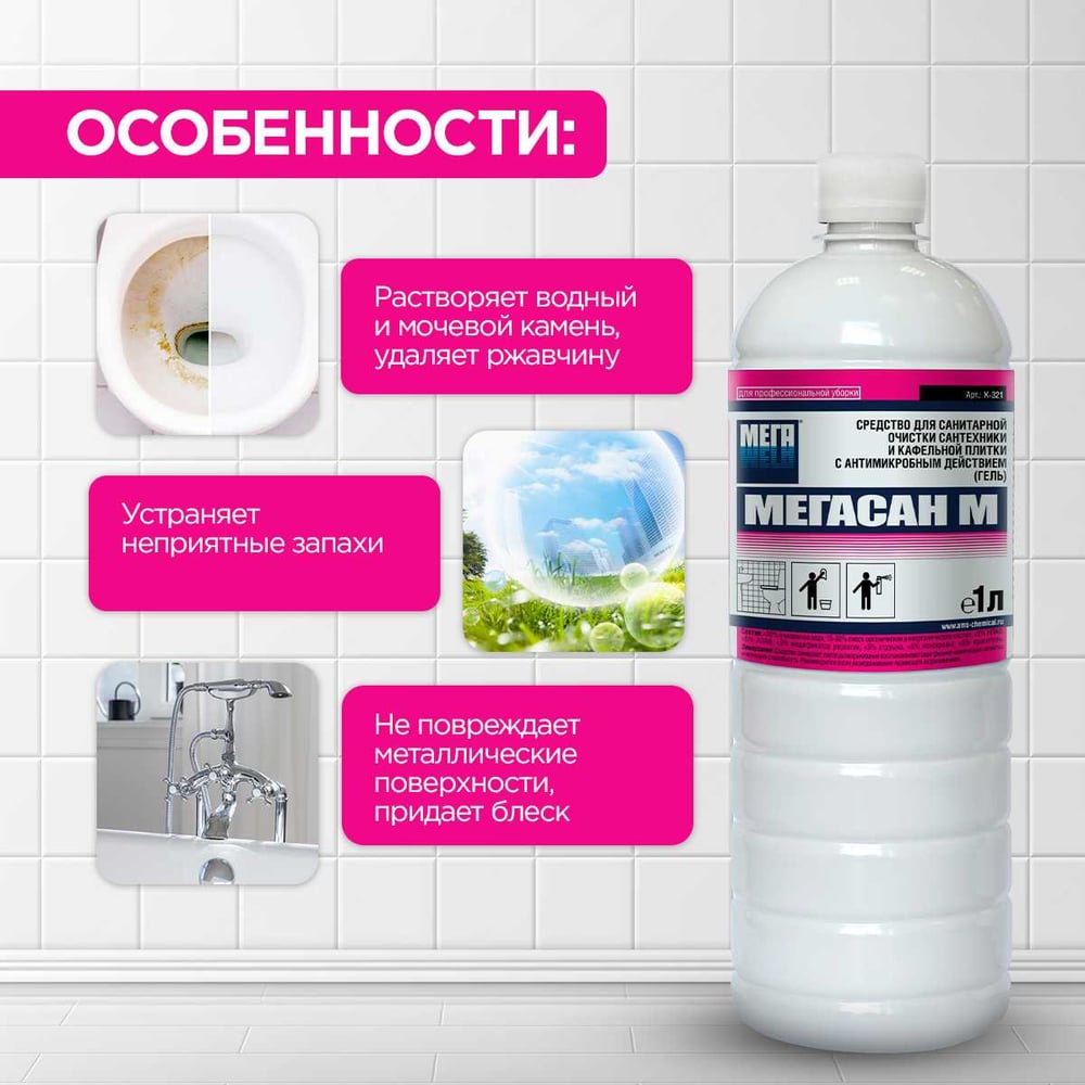 Средство для санитарной очистки сантехники и кафельной плитки Мега МЕГАСАН М К 321