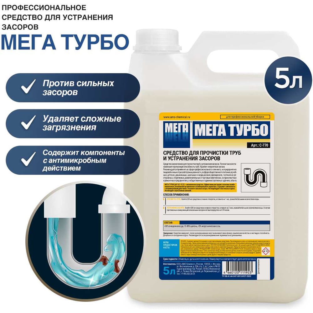 Средство для прочистки и устранения засоров Мега ТУРБО С 770