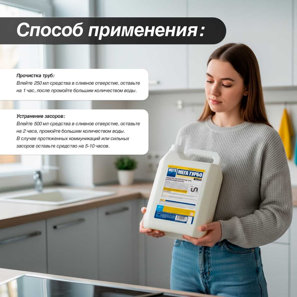 Средство для прочистки и устранения засоров МЕГА ТУРБО 5 л С 770