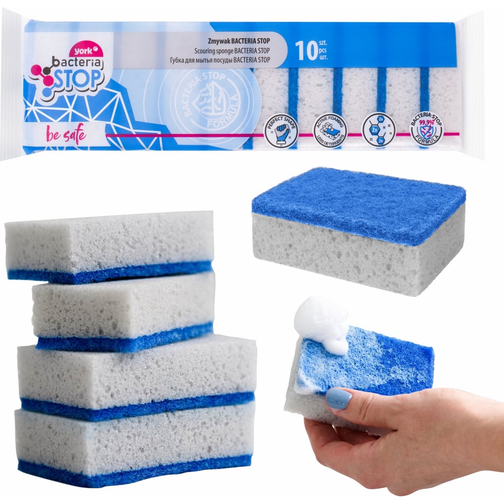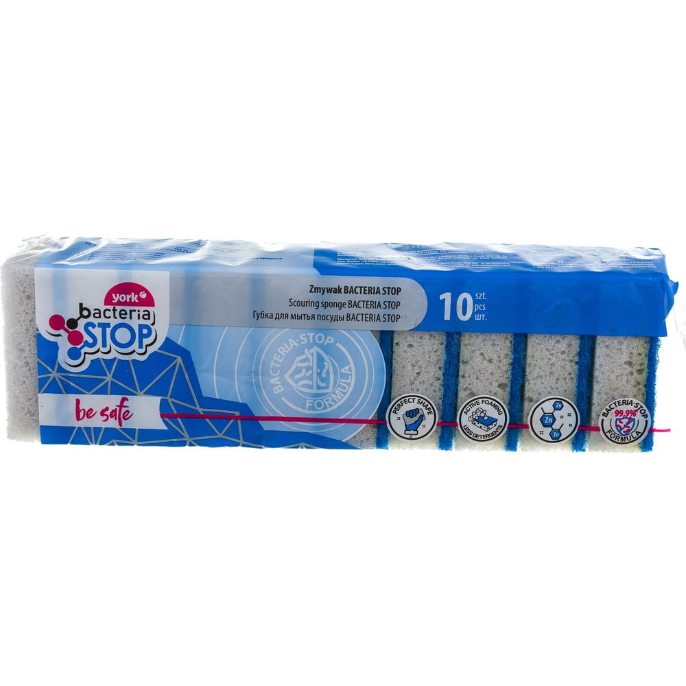 Антибактериальные губки для посуды YORK БАКТЕРИЯ СТОП 10 шт 034010