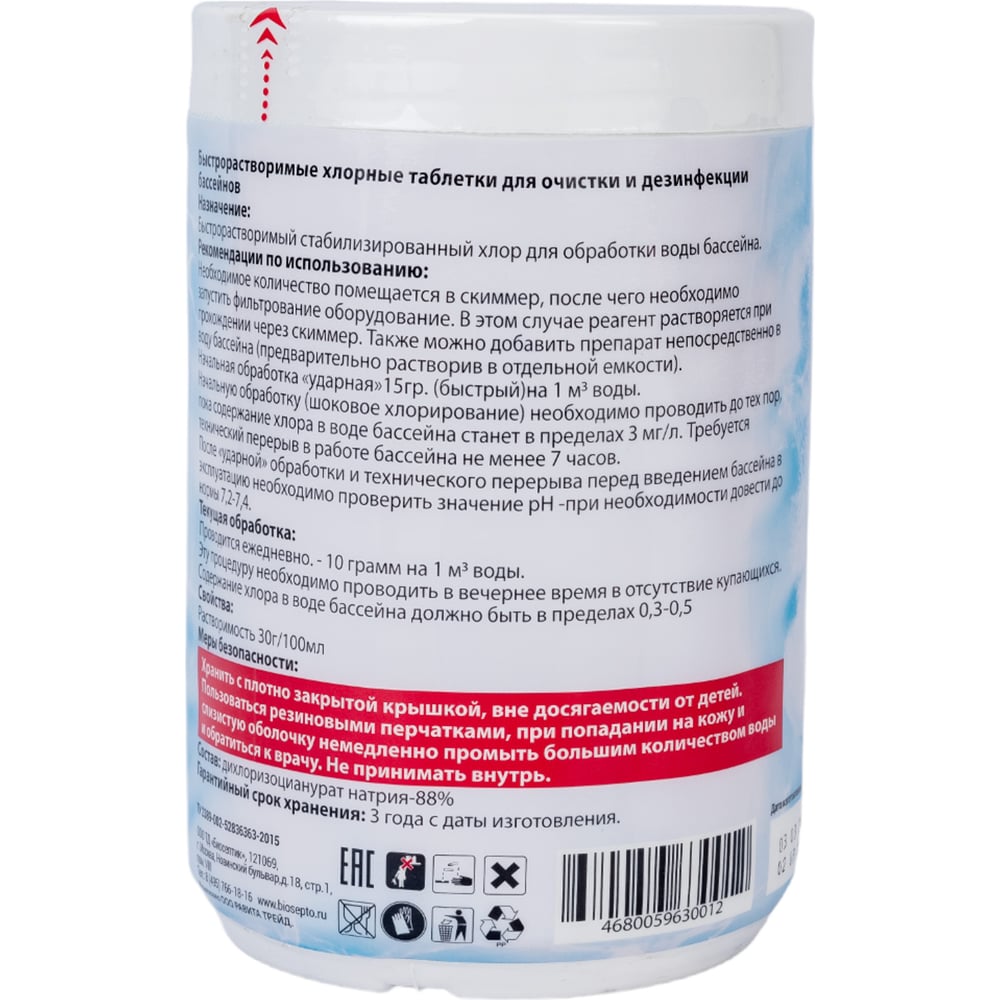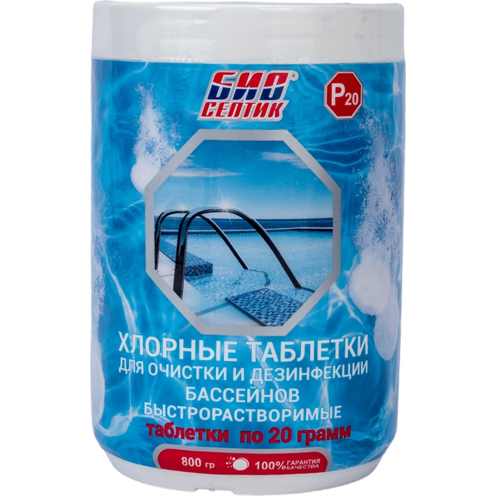 Быстрорастворимые хлорные таблетки для очистки и дезинфекции бассейнов Биосептик P20