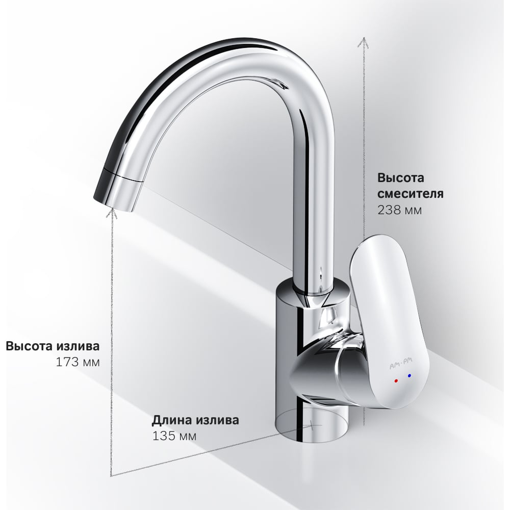 Смеситель для умывальника с поворотным изливом AM.PM Like хром F8002700