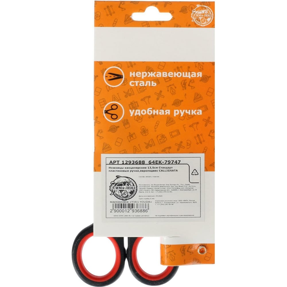 Канцелярские ножницы Calligrata Стандарт 1293688