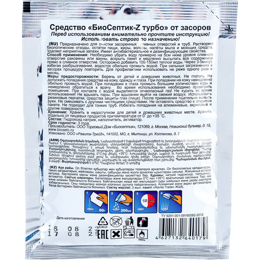 Гранулированное средство от засоров Биосептик 60 гр Zt