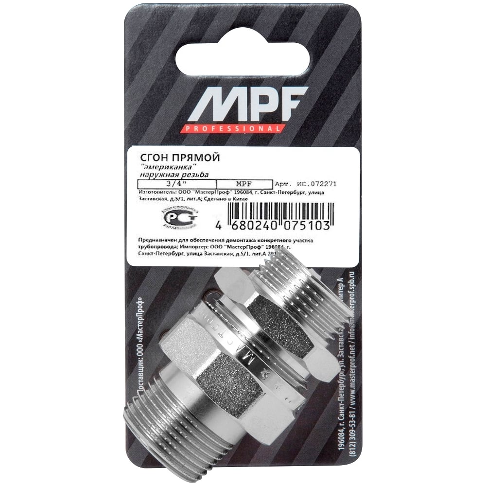 Американка прямая MPF 3/4" сгон прямой наружная-наружная резьба ИС.072271