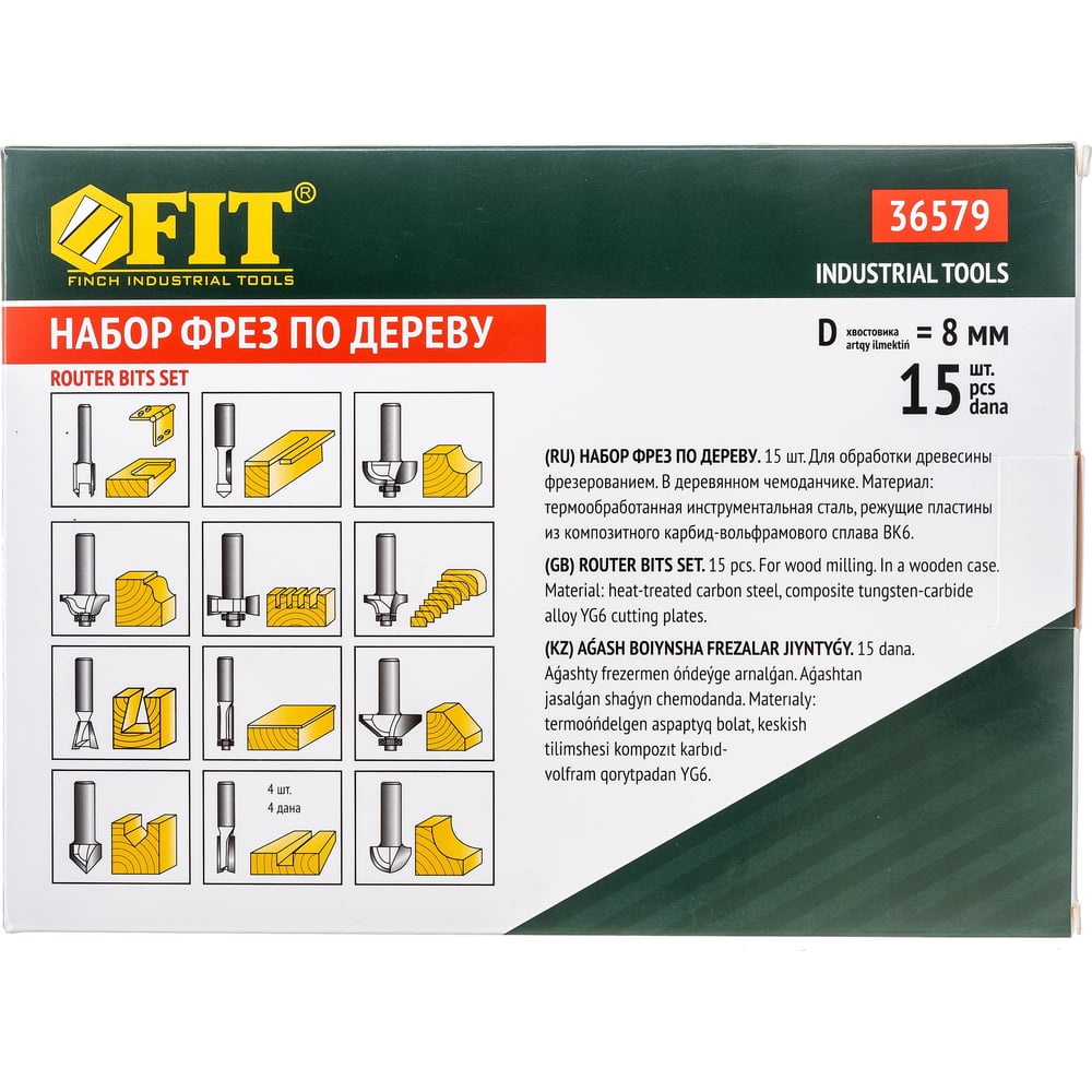 Фрезы кромочные по дереву для фасок 15 шт FIT 36579