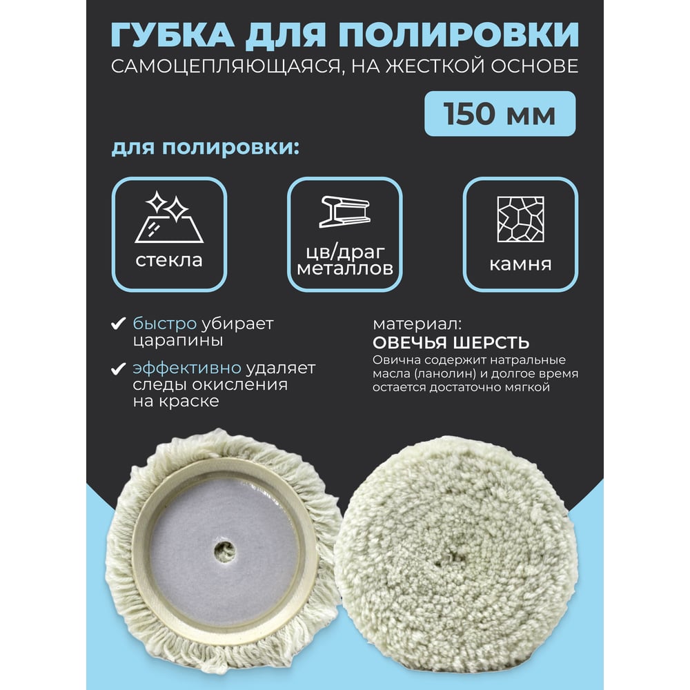 Губка для полировки Rockforce из овечьей шерсти самоцепляющаяся 150мм RF-PSP150S RF-PSP150S(48545)