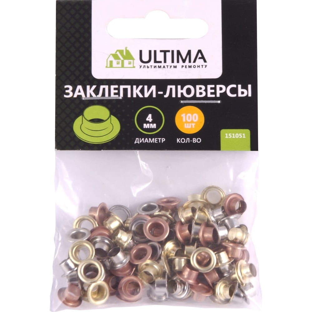 Заклепки-люверсы ULTIMA 4 мм, 100шт. 151051