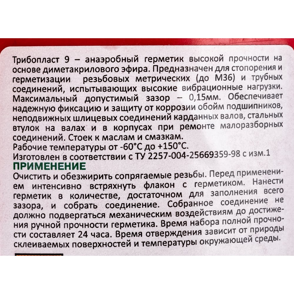 | Условия отверждения | отсутствие кислорода |