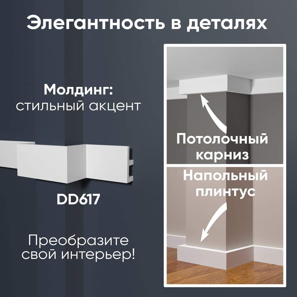 Потолочный карниз Decor-Dizayn ударопрочный влагостойкий под LED подсветку 50Х20Х2000 мм DD617
