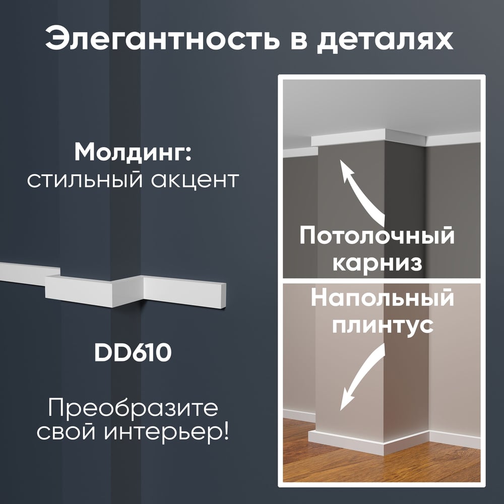 Ударопрочный влагостойкий стеновой молдинг под покраску Decor-Dizayn DD610