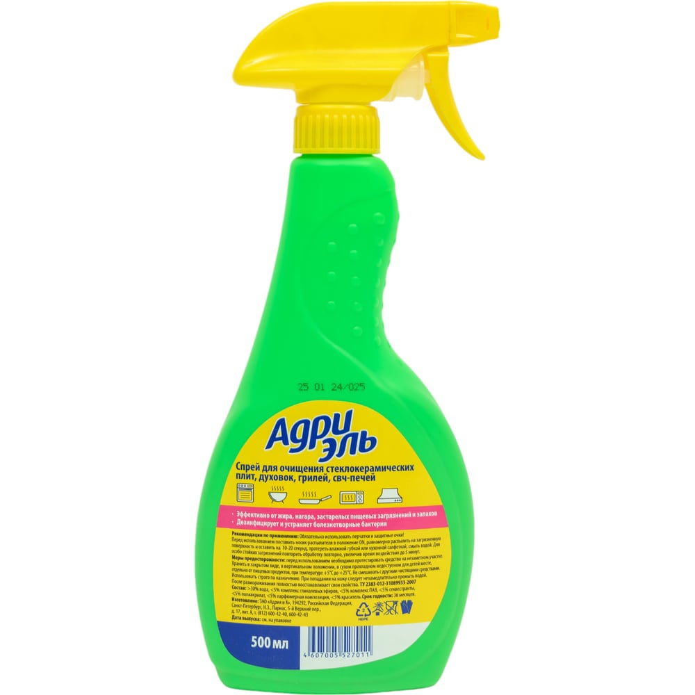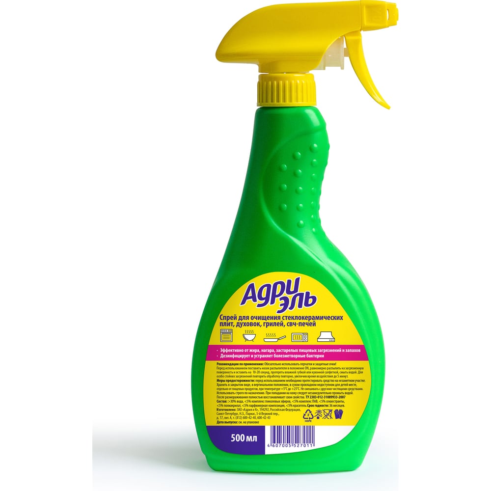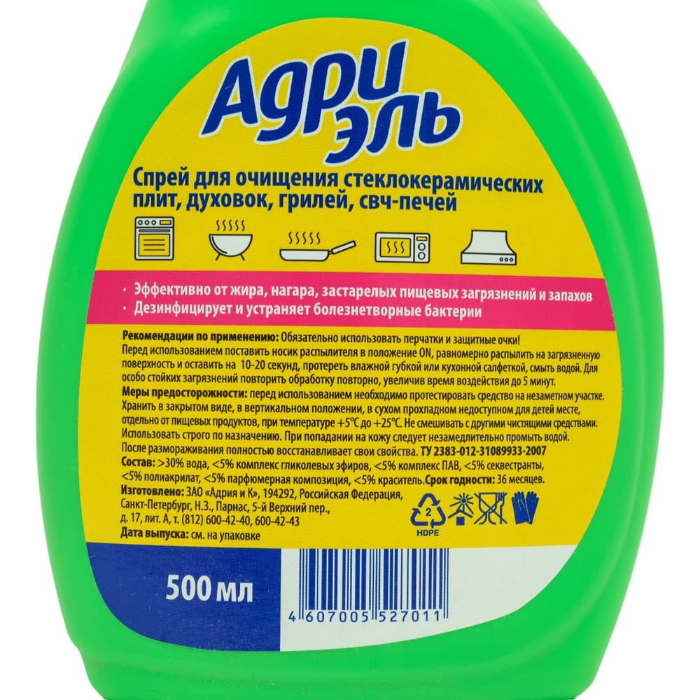 Чистящее средство для мытья стеклокерамических плит, грилей, СВЧ Адриэль спрей 500 мл 300240