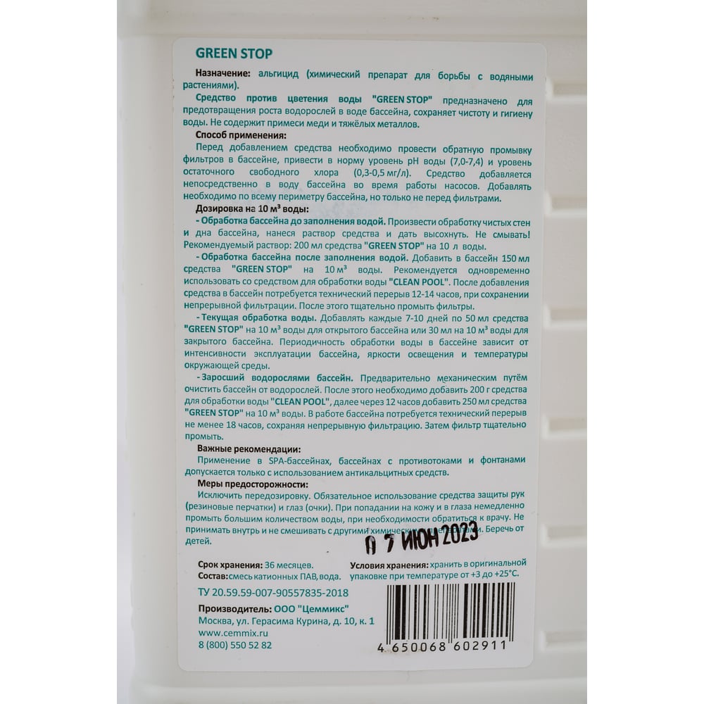 Средство против цветения воды CEMMIX Green Stop 221075