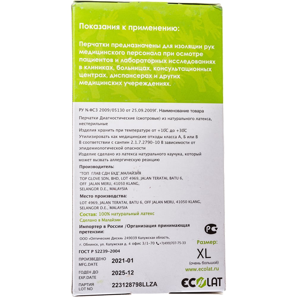 Диагностические смотровые перчатки EcoLat 2020/XL