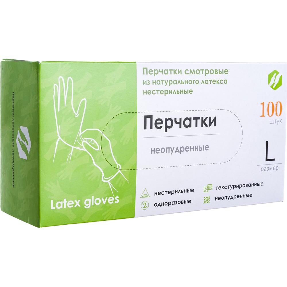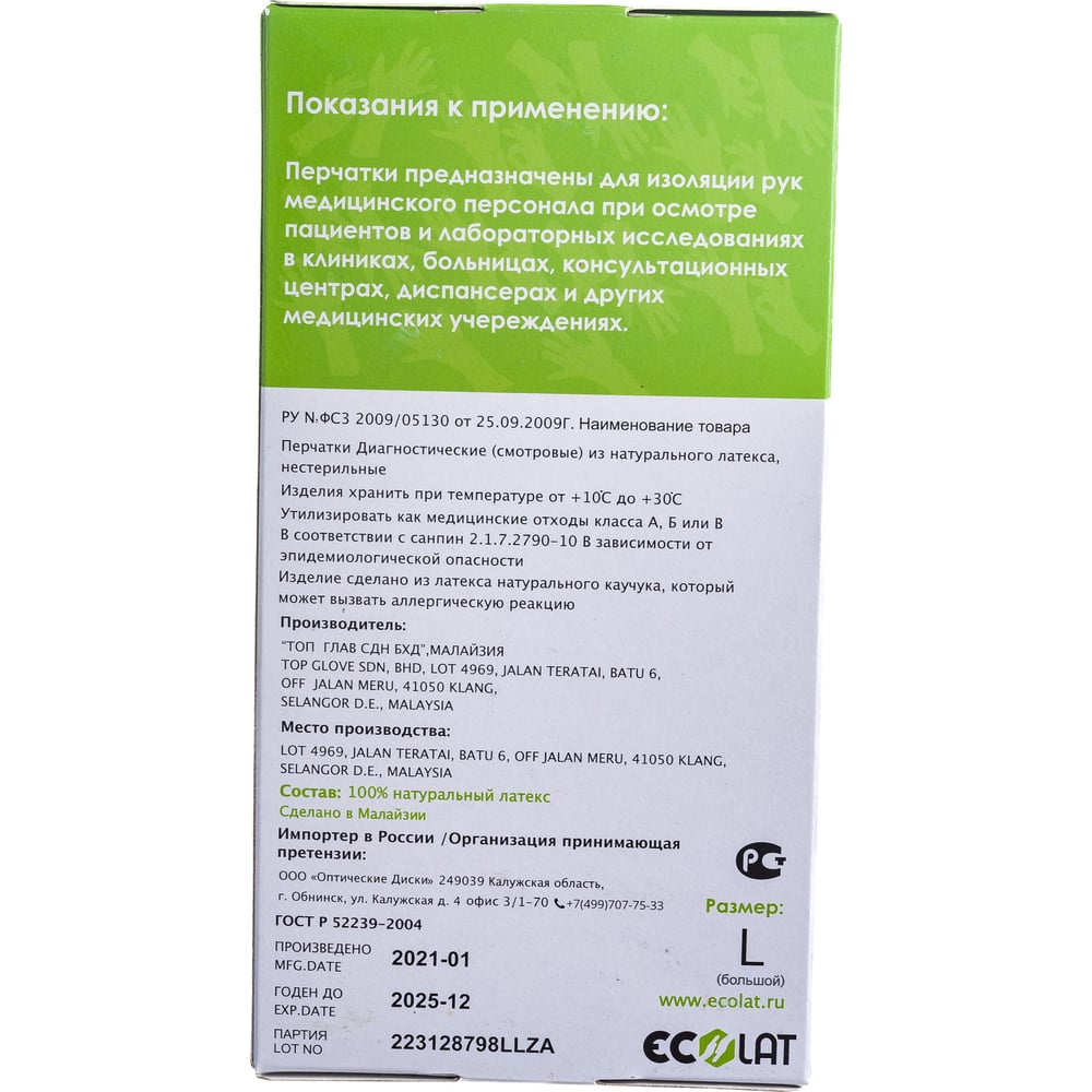 Диагностические смотровые перчатки из латекса EcoLat 2020/L