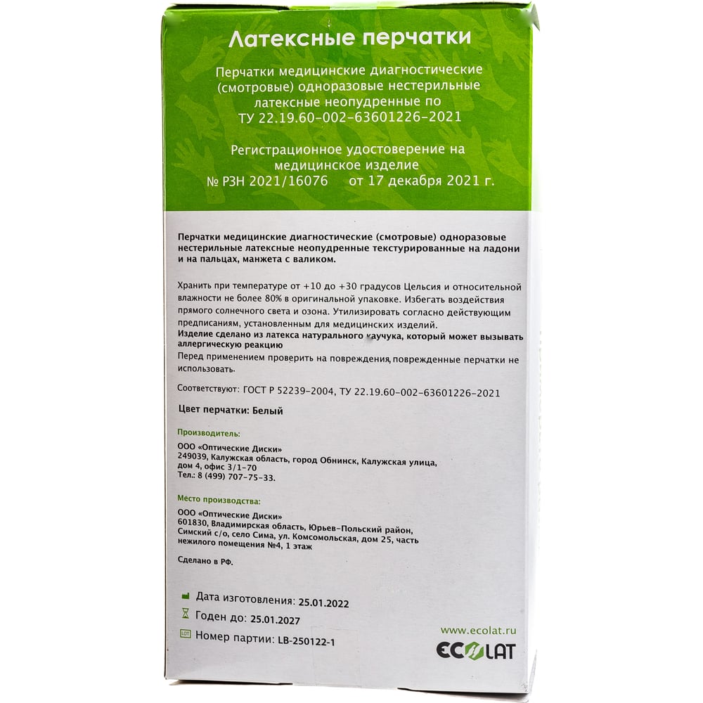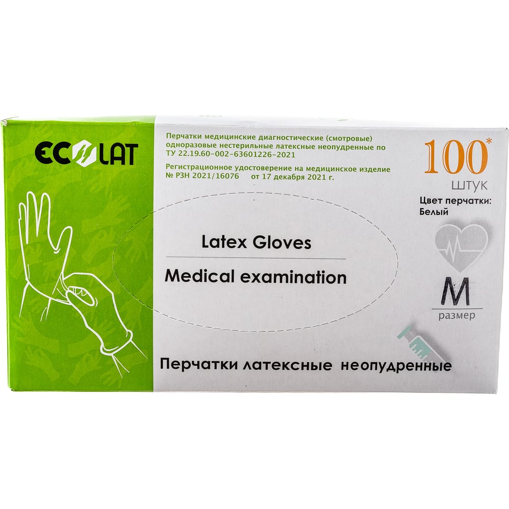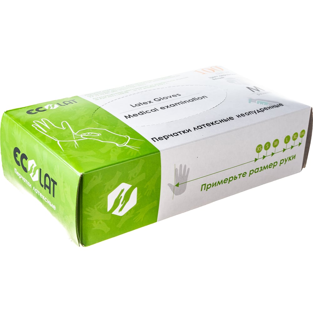 Диагностические смотровые перчатки EcoLat 2020/M