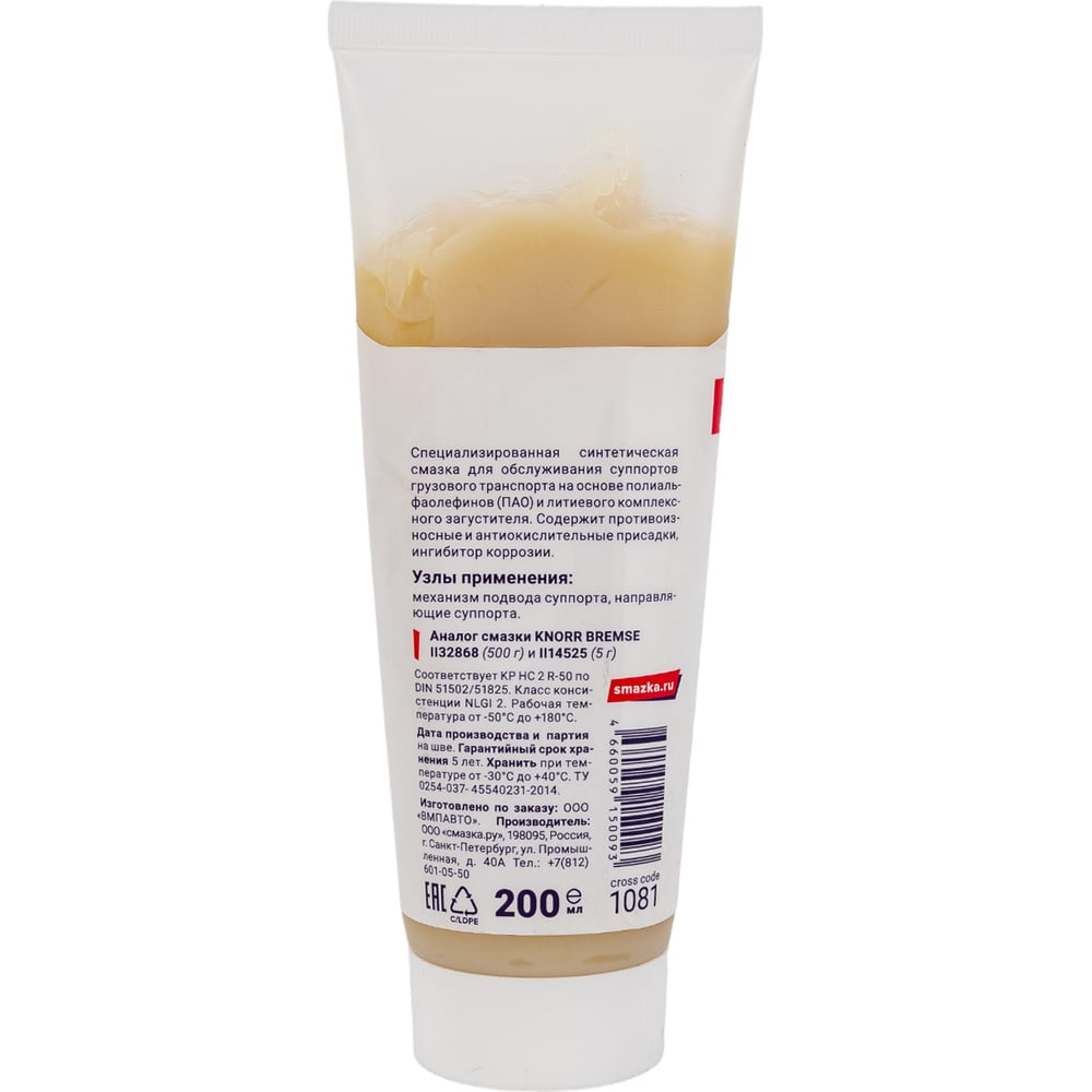 Смазка суппортов грузового транспорта ВМПАВТО 200мл туба 1081