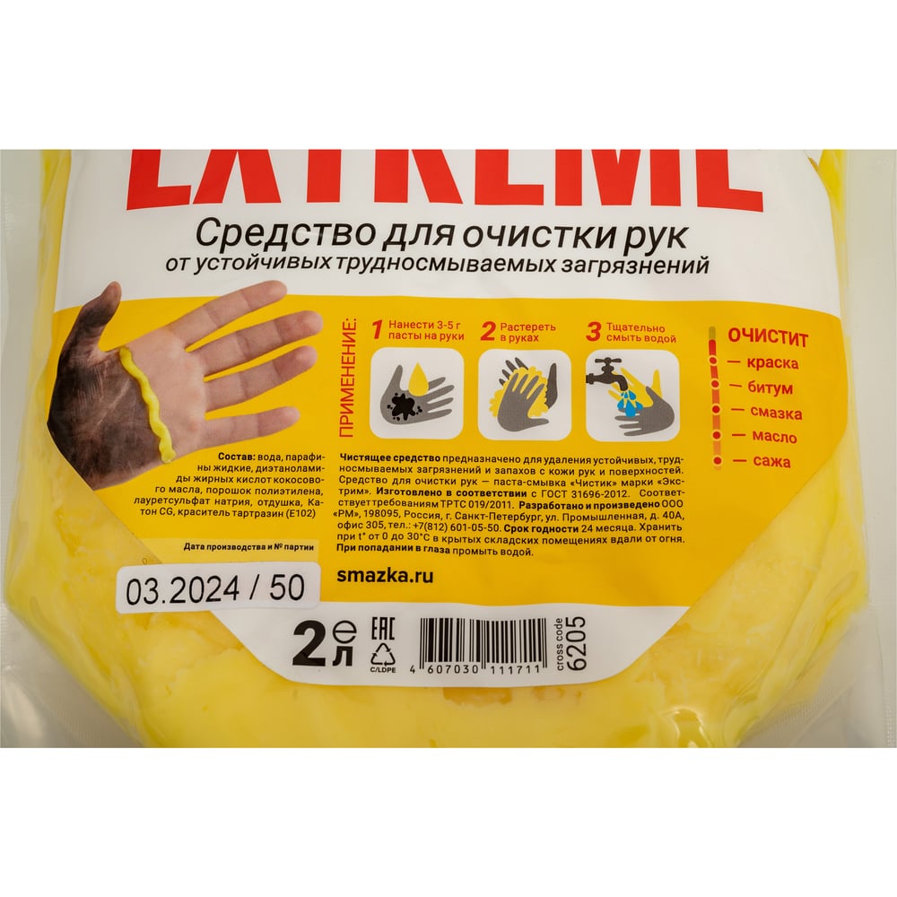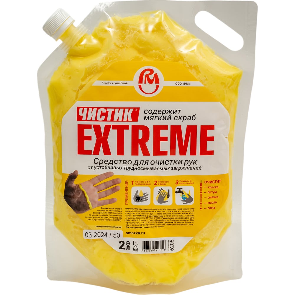 Средство для очистки рук ВМПАВТО ЭКСТРИМ Чистик, 2 л, дой-пак 6205
