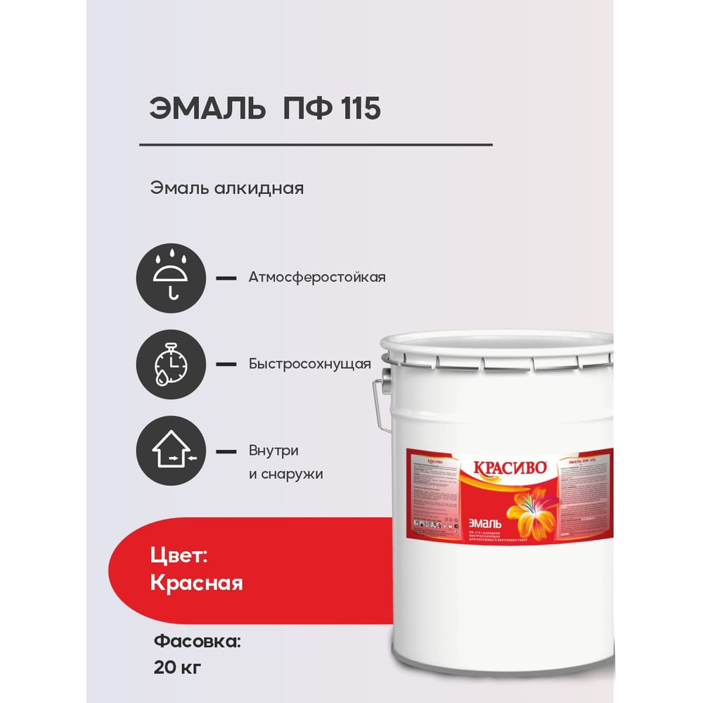 Эмаль Красиво ПФ-115 красный 20 кг для стен по металлу, по дереву 4690417011278